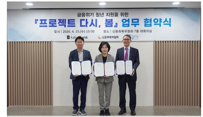 (대한뉴스 한원석 기자)=(사)함께만드는세상(사회연대은행)은 카카오뱅크, 신용회복위원회와 함께 금융위기 청년의 신용 회복과 자립을 지원하는 ‘프로젝트 다시, 봄’ 사업 추진을 위한 업무협약(MOU)을 체결했다고 16일 밝혔다.