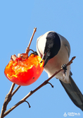 ▲사이좋게 '냠냠' ▲물까치의 점심 식사, ▲가을 만찬 즐기는 산까치. (대한뉴스 김기준 기자)지난 2일 경남 함양군 백전면 한 주택가에 심어진 감나무에서 물까치가 홍시를 쪼아 먹고 있다.