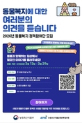 (대한뉴스 한원석 기자)=농림축산식품부(장관 송미령, 이하 농식품부)는 반려동물과 함께 생활하는 반려인 그리고 동물과 함께 생활하는데 관심이 많은 국민들의 의견을 듣기 위해 ‘농림축산식품부와 함께 하는 동물복지 정책참여단’을 모집한다고 밝혔다. 동물복지 정책참여단은 동물과 함께 하는 현장의 생생한 목소리를 정책에 반영하고자 마련한 소통채널로 반려동물을 키우면서 겪은 불편한 점이나 개선이 되었으면 하는 사항 그리고 비반려인 관점에서 반려동물을 키우면서 지켜졌으면 하는 에티켓 등 동물복지에 관심이 있는 20세 이상 국민이면 누구나 참여할 수 있다. 모집 기간은 3월 13일부터 29일까지이며, 자세한 사항은 동물사랑배움터 누리집(https://apms.epis.or.kr)에서 확인할 수 있다. 한편, 농식품부는 봄철을 맞아 반려동물과 함께 외출하는 반려인을 위해 반려동물 건강관리 요령과 산책 시 지켜야 할 펫티켓도 함께 안내했다. 봄철은 기온이 상승하고 야외활동이 늘어나면서 반려동물의 외출 기회가 많아지는 시기이지만, 벼룩·진드기 등 외부기생충 활동이 활발해지고 일교차도 커지는 계절인 만큼 반려동물 건강관리에 각별한 주의가 필요한 시기이다. 특히, 산책이 늘어나는