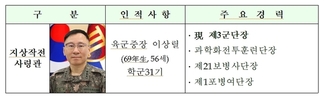 (대한뉴스 한원석 기자)=정부는 4월 13일(월)부로 육군 지상작전사령관 인사를 내정하였다. 現 제3군단장인 이상렬 육군중장을 대장으로 진급시켜 해당 직위에 보직하는 것으로서, 4월 14일(화) 국무회의 심의를 거쳐 국군 통수권자인 대통령이 임명할 예정이다. 육군 지상작전사령관 내정자 이상렬 육군중장은 제3군단장, 과학화전투훈련단장, 제21보병사단장, 제1포병여 단장 등을 역임한 야전형 지휘관으로서, 현 한반도 안보상황과 불안정한 국제안보 정세 속에서 확고한 군사대비태세를 공고히 할 작전 지휘능력과 다양한 전투훈련 경험을 갖추었고, 지상작전에 대한 풍부한 이해와 전략적 식견으로 전구작전을 주도하고 미래 지상군 역량을 강화할 수 있는 리더십을 갖춘 최적임자로 판단하여 지상작전사령관으로 선발하였다.