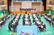 ▲함양청년회의소 ‘2026년 병오년 신년 인사회. (대한뉴스 김기준 기자)=함양청년회의소(JC)는 병오년 새해를 맞아 지난 8일 오전 고운체육관에서 ‘2026년 병오년 신년 인사회’를 개최했다. 이날 행사에는 진병영 군수를 비롯해 김윤택 군의회 의장, 김재웅 도의원을 비롯한 기관 및 사회단체 내빈과 함양청년회의소 가족, 군민 등 300여 명이 참석했다. 행사는 다볕오케스트라의 식전 공연을 시작으로 국민의례 및 내빈 소개, 신년 하례, 신년사 및 축사, 시루떡 절단, 축배 제의 순으로 진행됐다. 참석자들은 새해를 알리는 시루떡 절단식을 통해 군민과 향우들의 건강과 행복을 기원했으며, 이어진 떡국 오찬 자리에서는 새해 인사와 덕담을 나누며 함양군 발전을 위한 다양한 의견을 교환했다. 전종일 회장은 신년사를 통해 “희망찬 2026년을 맞아 마련한 신년 인사회에 많은 분이 참석해 주셔서 감사드린다.”라며 “앞으로도 청년회의소는 지역의 젊은 리더로서 지역 발전에 이바지할 수 있도록 최선을 다하겠다.”라고 말했다. 진병영 군수는 “지난 한 해 동안 군정 발전을 위해 힘을 모아주신 모든 분께 감사드린다”라며 “병오년 새해에는 더 보람 있는 한 해가 되도록 최선을 다할 것