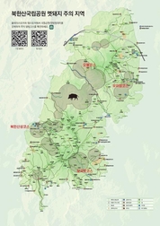 (대한뉴스 한원석 기자)=기후에너지환경부 산하 국립공원공단(이사장 주대영)은 그간의 멧돼지 관련 연구자료와 과학적 분석기법을 활용하여 최근 제작한 ‘멧돼지 안전관리지도’를 북한산 등 도심형 국립공원 현장에 적용한다고 밝혔다. 이번 ‘멧돼지 안전관리지도’는 국립공원공단(국립공원연구원)의 멧돼지 서식실태조사를 통해 확인된 정보를 바탕으로 멧돼지의 서식환경과 비슷한 조건을 가진 지점들을 ‘인공지능 기계학습(AI 머신러닝)’ 방식으로 분석하여 멧돼지의 잠재적인 출몰지점과 유의해야 할 탐방로를 도출하고 이를 안전관리지도로 제작한 것이다. 멧돼지 서식실태조사에 따르면 북한산국립공원의 멧돼지 서식밀도는 국립공원과 지자체의 개체수 조절 노력으로 2022년도에 2.1개체/㎢에서 2023년 1.9개체/㎢, 2024년 1.6개체/㎢로 지속적으로 감소 추세에 있다. 다만, 북한산국립공원은 연간 700만 명이 방문하는 대표적인 도심형 국립공원으로 97개의 탐방로가 흩어져 있어 주의가 필요하다. 국립공원공단은 ‘멧돼지 안전관리지도’를 제작하면서 북한산성, 우이암, 오봉, 보국문 등 4개의 탐방로가 멧돼지의 출현 가능성이 가장 높은 것으로 추정했으며, 이를 지도상에 원의 형태로 표시했