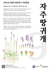 (대한뉴스 한원석 기자)=환경부(장관 김성환)는 9월 ‘이달의 멸종위기 야생생물’로 산속 습지에서 자라는 식충 식물인 ‘자주땅귀개’를 선정했다고 밝혔다. 자주땅귀개는 높이 약 10cm까지 자라며, 주걱 모양의 잎 사이에서 푸른빛이 감도는 연한 자주색의 꽃을 피운다. 꽃 모양이 귀이개를 닮은 데서 귀개라는 이름이 유래했으며 꽃 색깔이 자주색이라서 자주땅귀개라고 불린다. 꽃잎의 끝은 입술 모양이고 뾰족한 꽃뿔이 아래쪽으로 향하는 특징이 있다. 열매는 둥글며, 익으면 벌어지는 삭과 형태다. 땅속줄기는 실처럼 뻗으며 포충낭이 달려있다. 이 포충낭에 물을 채워 같이 딸려 들어오는 물벼룩(크기가 약 0.2~1.8mm에 불과) 등 작은 생물을 잡아먹는다. 이러한 포식행위는 영양분이 부족한 산속 습지 환경에서 살아남기 위해 발달한 독특한 생존전략으로 보고 있다. 자주땅귀개는 산속 습지나 계곡 주변의 물기가 있는 곳에서 자란다. 햇빛이 잘 들고 수심은 얕거나 물이 차 있지 않더라도 토양 속 수분이 풍부한 곳에서 출현한다. 비슷한 식충식물인 이삭귀개와 꽃 형태가 유사하지만, 자주땅귀개는 꽃뿔이 아래를 향해 뻗는 점에서 구분된다. 국내에서는 제주도를 비롯해 전라남도, 경상남도