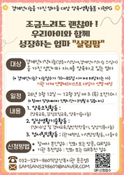 (대한뉴스 한원석 기자)=인천 부평구에 위치한 삼산종합사회복지관(이하 삼산복지관)은 2026년 신규 프로그램으로 경계선지적지능(혹은 경증지적장애)을 가진 어머니를 위한 양육·생활돌봄 지원사업 「살림맘」을 운영하고, 2026년 3월 개강을 앞두고 참여자를 모집하고 있다. 「살림맘」은 경계선지능(IQ 70~85)에 해당하는 어머니들이 실질적인 양육기술과 일상생활기술을 체계적으로 습득함으로써 자녀와 함께 지역사회 안에서 안정적으로 생활할 수 있도록 돕기 위해 기획된 프로그램이다. 경계선지적지능을 가진 부모의 경우 정보 이해 및 의사결정, 양육기술 습득 등에 어려움을 겪는 경우가 많지만, 이를 전문적으로 지원하는 지역사회 프로그램은 부족한 실정이다. 이에 삼산종합사회복지관은 당사자의 특성을 고려한 맞춤형 교육과 활동 중심 프로그램을 통해 실질적인 변화를 도모하고자 한다. 프로그램은 ▲양육교육 및 양육나눔활동 ▲일상생활기술활동(정리수납,경제교육,밑반찬만들기 등) ▲정서힐링활동(지역탐방 및 산책,나들이)이다. 운영 기간은 2026년 3월 개강식을 시작으로 12월 둘째주까지 진행될 예정이다. 모집 대상은 부평구에 거주하며 경계선지적지능(혹은 경증지적장애)을 가진 성인이하