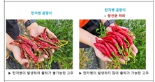 (대한뉴스 한원석 기자)=환경부 소속 국립생물자원관(관장 서민환)은 우리나라 토양에서 발견한 미생물 방선균을 고추 탄저병 방제 현장에 적용한 결과, 기존 화학농약 대비 98%의 방제 효과를 최근 확인했다고 밝혔다. 국립생물자원관은 지난해 순천대 박숙영 교수 연구진과 공동으로 탄저병의 원인이 되는 곰팡이를 사멸시키는 자생 방선균(JS029)의 특허를 출원하고 올해 7월에서 9월까지 전남 순천시의 야외 농지와 실내 시설에서 고추 탄저병 방제 현장 적용 연구를 수행했다. 연구진이 방선균 배양액을 500배로 희석해 하루 1회씩 3일간 고추에 분무한 결과 화학 농약인 테부코나졸 대비 98%의 예방 효과를 확인했으며 탄저병이 발병한 고추에 1회 분무 처리만으로 95%의 확산 억제 효과가 나타났다. 연구진은 이번 연구에 사용된 방선균 방제 기술이 재배 방식에 따른 차이 없이 야외와 실내에서 화학농약과 비슷한 방제 효과를 보여 다량으로 사용되는 고추 탄저병 방제용 화학농약 사용량을 감소시킬 수 있을 것으로 기대했다. 아울러 이 기술을 활용하려는 기업에 관련 기술을 이전할 계획이다. 한편 국립생물자원관은 고추 탄저병 방제 현장에 쓰인 방선균(JS029)을 지난해 11월 배추