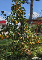(대한뉴스 혜운 기자)= 푸르스름하던 색깔이 점차 노래지더니 어느새 밝은 주황빛에 가까운 감이 나무에 주렁주렁 열렸다. 아~가을이 툭 우리들 곁에 왔다. 가을은 달콤함과 떫음의 맛을 가진 감 덕분에 더욱 풍성하다. 감은 봄에는 꽃으로, 여름에는 그늘로, 가을에는 열매로 겨울에는 곶감으로 사시사철 친근한 존재이다. 우연히 길을 걷다 가을의 길목에서 감을 만났다.