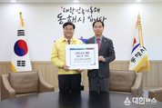 (대한뉴스 김기호 기자)=임응택 동해시의회 부의장이 3월 20일(금) 동해시청을 방문해 코로나19 예방을 위해 사용해 달라며 1천만원 상당의 마스크를 기탁했다.