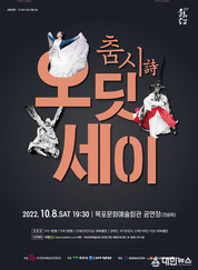 (대한뉴스 박청식기자)=목포시가 오는 10월 8일 오후 7시30분 목포문화예술회관에서 기획공연 ‘춤 詩 - 오딧세이’를 개최한다. 이번 공연은 동양 철학을 토대로 춤과 시, 음악이 어우러진 종합 예술 형태의 무용극이다. 한국 무용계의 거장 국수호 명인과 최고의 무용수들이 수년간 철저한 고증과 연구를 통해 한국인의 삶에 큰 영향을 끼친 동양의 핵심 사상을 정립하고, 이를 엮어 연희(演戱), 신화, 제도, 인습, 전설, 악(樂) 등 6악장으로 구성했다. 이를 통해 동양의 기원부터 현재까지 전반적인 문화사조의 맥을 짚고 이를 예술로 승화한 몸짓으로 펼쳐보인다. 관람대상은 만 8세 이상이며, 관람료는 R석(1층) 1만원, S석(2층) 5천원으로 지정좌석제를 시행한다. 예매시 할인되는데 단체 20인 이상은 30%가, 단체 100인 이상 및 장애인·국가유공자 등은 50%가 각각 할인된다.