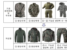 (대한뉴스 한원석 기자)=국방부는 ’26년 3월부터 신형 방한피복류인 전투피복체계 품질개선품 4종을 전군에 보급한다. 기존에 보급했던 방상내피, 방상외피, 방한복, 우의류등 다수의 방한피복류는 보온성이 부족하여 겹쳐 입는 경우가 많았고, 병영생활 또는 야외훈련 시 활동이 불편하다는 단점이 있었다. 국방부는 이와 같은 단점을 해결하기 위하여 기존 방한피복류의 보온성과 기능성을 향상시켜 4종으로 통합 및 개선하는 ‘전투피복체계 품질개선 사업’을 ’20년부터 ’25년까지 추진하였다. 이번에 개선된 전투피복체계 품질개선품은 △방상내피, △방상외피, △기능성방한복, △기능성전투우의로 최신 기능성 원단과 고사양의 성능을 적용하여 기존 피복류 대비 보온성ㆍ기능성ㆍ활동성이 크게 향상되었다. 품질개선품 4종은 기존 방한피복류 대비 보온성 뿐 아니라 방풍성ㆍ투습성ㆍ방수성ㆍ내구성ㆍ쾌적성 등의 기능성을 대폭 강화했다. 또한, 기존 방한피복류 대비 약 20% 가볍게 만들었으며, 겹쳐 입을 때의 피복압을 최소화하여 활동성과 편의성을 대폭 강화했다. 방상내피와 방상외피는 각각 기능성 방한복의 내피로 입을 수 있으며, 기능성 방한복을 벗으면 겉옷으로도 입을 수 있다. 방상내피 역시 방상