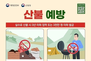 정부는 봄철 산불 위험에 대비해 3월 14일(토)부터 4월 19일(일)까지를 ‘대형산불 특별대책기간’으로 지정하고 범정부 차원의 협력 대응체계를 본격 가동한다. 최근 10년간(2016~2025년) 전체 산불의 46%, 피해 면적의 96%가 3~4월에 집중됐다. 특히 피해면적 100ha 이상의 대형산불은 총 38건 중 28건(약 74%)이 이 시기에 발생해 각별한 주의가 필요한 상황이다. 대책기간 운영에 앞서 행정안전부(장관 윤호중)와 산림청(청장 박은식)은 3월 13일(금) 관계기관 대책회의를 공동 개최하고, 기관별 대응 태세를 점검했다. 정부는 지난해 영남권 초대형 산불 이후 마련한 ‘관계기관 합동 산불 종합대책’(’25.10월)에 따라 ▴산불 진화헬기 신속 출동(30분 이내 도착), ▴군 헬기 지원 확대(총 143대), ▴산림‧소방 등 인력‧장비 보강 및 적극적인 산불진화 투입 등 국가 가용자원을 총동원해 대응하고 있다. 이날 회의에서는 ‘관계기관 산불 종합대책’을 기반으로 기관별 산불 방지대책 및 협력 방안을 논의했다. 이번 특별대책기간동안 정부는 산림청을 중심으로 주말 기동 단속 등 산불 예방·단속 활동을 강화하고, 불법 소각 등 위반 행위 적발시에는