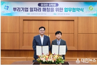 (대한뉴스 한원석 기자)=IBK기업은행(은행장 김성태)은 경기과학기술대학교(총장 허남용)와 ‘외국인 유학생·뿌리기업 일자리 매칭’ 업무협약을 체결했다고 31일 밝혔다. 뿌리산업은 주조·금형·용접 등 제조업의 기반이 되는 핵심 산업이다. 기업은행은 산업통상부 지정 뿌리산업 외국인 기술인력 양성 대학인 경기과학기술대학교와 중소기업의 인력난 해소 및 외국인 유학생의 취업 기회 확대를 위해 협약을 체결했다. 이번 협약에 따라 양 기관은 ▲우수 기업 발굴 및 인재 추천 ▲우수한 교육환경 지원 ▲외국인 유학생 취업 컨설팅 ▲중소기업 일자리 지원 등을 위해 상호 협력하기로 했다. 특히 기업은행은 중소기업 전문 채용포털 ‘i-ONE JOB’에 외국인 유학생을 위한 전용 채용관을 구축하고 취업 컨설팅 등을 지원한다. 기업은행 관계자는 “뿌리산업은 제조업 경쟁력의 근간을 형성하나 취업 기피 현상 등으로 외국인 기술 인력을 필요로 하는 분야”라며 “앞으로도 다양한 기관과 협업을 통해 뿌리산업 분야 기업의 인력난 해소를 위해 최선을 다하겠다”고 밝혔다.