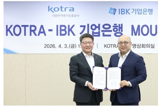 IBK기업은행(은행장 장민영)은 지난 3일 서울 서초구 대한무역투자진흥공사(이하 코트라) 본사에서 코트라와 ‘중소기업 해외시장 개척 지원을 위한 업무협약’을 체결했다고 6일 밝혔다. 이번 협약은 미·중 무역 갈등과 공급망 재편 등 급변하는 글로벌 무역환경 속에서 중소기업의 수출 시장 다변화를 지원하기 위해 마련됐다. 양 기관은 수출기업의 해외 진출 맞춤형 지원, 수출 애로 해소, 성공 사례 발굴 등에 상호 협력하기로 했다. 협약에 따라 기업은행은 코트라 해외 무역관이 현지 바이어 발굴, 현지 마케팅, 물류 통관 자문 등 중소기업에 맞춤형 서비스를 제공하는 ‘해외시장 개척 프로그램’을 지원한다. 아울러 한국무역보험공사의 단기수출보험 가입 비용을 지원해 수출대금 미회수에 따른 위험을 줄여준다. 기업은행 관계자는 “코트라의 글로벌 네트워크를 활용해 중소기업의 해외시장 진출을 적극적으로 지원하겠다”며 “앞으로도 중소기업의 수출 경쟁력 강화와 지속적인 성장을 적극 지원하겠다“고 밝혔다.