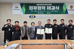 ▲선린대학교 총장 곽진한, 동해지방해양경찰청 청장 김성종 업무협약 체결 사진. (대한뉴스 김기준 기자)=동해지방해양경찰청(청장 김성종)은 11월 12일 포항시 소재 선린대학교에서 상호 공동의 발전을 도모하고자 선린대학교(총장 곽진한)와 업무협약을 체결했다고 밝혔다. 이번 협약은 지난해 첫 교류를 시작으로 올해까지 이어지고 있으며, 해양 현장에서 발생할 수 있는 각종 응급상황에 신속하고 전문적으로 대응하기 위해 최신식 응급 처치 및 교육과 인력 교류를 추친하고자 마련됐다. 주요 협약 내용은 △구급 교육과정 연계 및 활성화를 위한 학술정보 교류 △인적 자원 공유 활성화 및 구급 시설, 장비 등의 공동 활용 △선린대 학생의 동해지방해양경찰청 포항항공대 현장 연수 기회 제공 등 상호 협력 방안과 향후 추진 계획을 함께 논의했다. ▲동해해경청, 선린대학교와 업무협약 체결 기념사진. 김성종 동해지방해양경찰청장은 “이번 협약을 통해 해양 현장의 응급대응 역량이 한층 강화될 것으로 기대 된다.”며 “미래 응급의료 인재들이 실무 중심의 경험을 쌓는 좋은 계기가 되길 바란다”고 말했다.