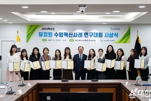 ▲시상식 모습. (대한뉴스 윤병하 기자)=부산광역시교육청(교육감 김석준)은 지난 12일 오후 시교육청에서 ‘2025학년도 유치원 수업혁신사례 연구대회’ 입상자에 대한 시상식을 개최했다. 부산교육청은 유치원 교사의 자발적인 수업 혁신을 지원하고 유치원 현장의 연구 문화를 조성하기 위해 지난 2021년부터 매년 유치원 수업혁신사례 연구대회를 열고 있다. 지난 4월부터 10월까지 진행한 올해 대회에는 23명의 부산지역 유치원 교사가 참여해 연구 역량을 뽐냈으며, 1등급 5명, 2등급 4명, 3등급 4명 총 13명이 수상의 영예를 얻었다. 부산교육청은 입상자들의 연구보고서와 수업 동영상을 ‘연구대회 네트워크(http://www.edunet.net)’와 교수학습샘터(https://westudy.busanedu.net)에 탑재해 현장에서 활용하도록 할 방침이다. 생태 감수성과 지속 가능한 삶을 위한 환경교육에 관한 연구로 1등급 수상자로 선정된 내성초등학교병설유치원 김미정 교사는 “이번 대회를 통해 기후 위기라는 어려운 주제를 유아놀이 중심 수업으로 풀어가는 과정에서, 교사로서도 배움과 성찰의 시간을 가질 수 있었다”고 소감을 밝혔다. 김석준 교육감은 “놀이에서 시작된