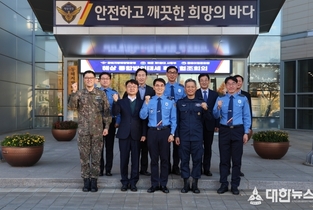 ▲동해해경청-해군1함대사령부-동해어업관리단 해상통합방위 확립 협조회의 단체사진. (대한뉴스 김기준 기자)=동해지방해양경찰청(청장 김성종)은 해군 제1함대사령부(사령관 곽광섭), 동해어업관리단(단장 오성현)과 함께 「해상 통합방위 및 해양주권 수호 강화를 위한 협조회의」를 11월 12일 동해해경청에서 개최했다고 밝혔다. 이번 회의는 동해 해역의 안보환경이 복합화되는 가운데, 제3국 어선의 불법조업 대응, 우리 어선의 안전조업 보장, 접경해역 위기대응 공조체계 확립 등을 논의하기 위해 마련되었다. 회의에서는 최근 동해 북방한계선(NLL) 인근 해역에서의 외국 어선 이동 동향과 조업 사례를 공유하고, 유사시 정보공유 체계와 합동 대응 절차를 신속히 가동할 수 있는 실질적 협력방안을 중점적으로 검토했다. 또한 조업어선의 안전 확보를 위해 해경의 해상순찰, 해군의 감시·경계자산과 어업관리단의 단속정보를 연계한 3중 통합감시체계 구축 필요성도 함께 논의되었다. 김성종 동해지방해양경찰청장은 “이번 협조회의를 통해 해경·군·관 간 현장 중심의 공조체계 강화와 실질적 위기대응 역량 향상의 계기를 마련했다”며 “앞으로도 동해해경청은 국가 해양주권 수호와 해양안보 확립의 최전선