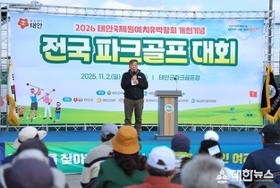2026 태안국제원예치유박람회 개최를 기념하는”전국파크골프대회"가 충남 태안파크골프장에서 11월 2일 열렸다. 가세로 태안군수는 환영사를 통하여 2026년 4월 25일 부터 안면도 꽃지해수욕장에서 열리는 ”국제꽃박람회“의 성공적인 개최를 위하여 태안군체육회와 파크골프협회에서 개최하고 국내 최대규모로 열리는 ”전국파크골프대“를 유치하게 되어 영광스럽다고 전했다. 또한, 파크골프대회에 참가한 모든선수들이 승패를 따지지말고 즐거운 마음으로 골프경기에 임해주시길 다시한번 부탁드린다고 하면서 이어 ”꽃과 바다“ 의 태안군에 오셨으니 태안의 특산물인 대하.꽃게.등 싱싱한 해산물과 김장철에 특화된 마늘. 태양초고추 등 여러 가지 농·특산품을 집에 가실땐 양손에 넉넉히 챙겨가시길 바라는 마음이라고 전하며 태안군 농·특산품 홍보도 활발히 했다. 개막식 무대 뒤편에서는 지역 특산물 홍보 부스가 마련됐다. 태안산 감태, 고구마, 꽃차 등이 인기였다. 이날 열린 ”전국파크골프대회“ 우승상금이 2,000만원이었다. 대회관계자는 "이번 대회는 단순한 스포츠 이벤트가 아니라 치유와 힐링의 축제"라고 강조했다. 시상은 남녀 각 1~10위까지 총 20명에게 상금이 수여되며 C2홀 홀인원