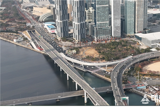 ▲전경사진 . (대한뉴스 윤병하 기자)=부산시(시장 박형준)는 오늘(22일) 오후 3시 해운대구 올림픽공원에서 「광안대교 접속도로 연결공사」개통식을 개최한다고 밝혔다. 개통식에는 박 시장을 비롯해 국회의원, 해운대구청장, 시의원, 공사관계자, 시민 등 200여 명이 참석할 예정이다. 오늘(22일) 개통식을 마친 후 오후 5시부터 정식 개통한다. 시는 해운대구 신시가지와 센텀시티를 연결하기 위해 2017년부터 2025년까지 총사업비 412억 원(전액 시비)이 투입하여 공사를 추진했다. 2017년 타당성 조사를 시작으로 2018~2019년 기본 및 실시설계용역 단계를 거쳐 2023년 본 사업을 착공하였으며, 애초 계획대로 3년 만에 준공했다. 시민들의 교통 불편을 최소화하기 위해 야간작업 및 도로 부분 통제 공사방식을 주로 진행했음에도 공정을 차질 없이 완료했다. 이번 개통에 따라 신시가지에서 원동 나들목(IC) 교차로까지 이동시간이 10분가량 단축되고, 상습 정체 구간인 수영강변대로 및 해운대로의 교통량을 분산하여 교통난이 해소될 것으로 기대된다. ‘종합교통영향 분석 결과’에 따르면 개통 후 오후 6~7시 혼잡 시간대 수영강변대로 통과 차량이 기존 약 2만 2