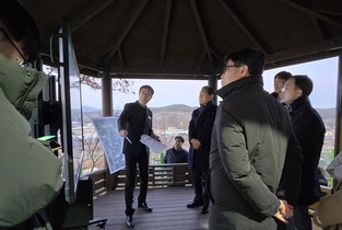 ▲계룡대로~국도1호선 광역도로사업 관련 계룡시 현장방문. (대한뉴스 김기호 기자)=계룡시(시장 이응우)는 ‘계룡대로~국도 1호선 광역도로사업’을 통해 교통망 혁신에 박차를 가할 전망이다. 이번 사업은 대전·세종·충청권 주요 거점을 연결해 지역 간 교통 흐름 개선과 이동시간 단축을 목표로 한다. 지난 18일, 김용석 국토교통부 대도시권광역교통위원회위원장이 계룡시를 방문해 사업 진행 상황을 점검했다. 김 위원장은 “주요 거점 간 이동성과 계룡역 환승센터 접근성 강화를 위해 세부 계획을 면밀히 검토하겠다”고 밝혔다. 이 사업은 제5차 광역교통시행계획에 포함돼 선정될 경우 총사업비 530억 원 규모의 광역도로 개설사업이 본격 추진될 예정이다. 사업이 완료되면 6천세대(1만5천명) 거주하는 대실지구와 금암동, 계룡역, 계룡산업단지까지 진․출입 시 연화교차로 또는 계룡과선교까지 우회하는 그간의 불편함이 해소되는 등 최대 10분 정도 단축될 것으로 예상된다. 또한 계룡역을 출발역으로 하는 충청권 광역철도 1단계(계룡∼신탄진)와 연계돼 대전․세종․충청권 간 교통망을 획기적으로 강화함은 물론 교통체증 해소와 주민들의 교통 편의성 향상과 지역경제에도 큰 도움이 될 것으로 기대
