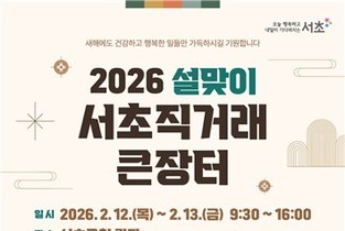 서울 서초구(구청장 전성수)는 설 명절을 맞아 오는 12일, 13일 이틀간 구청 광장과 인근 음악산책길에서 '설맞이 서초 직거래 큰장터'를 개최한다. '서초 직거래 큰장터'는 2003년 시작해 올해로 24년째를 맞는 서울에서 유일하게 정기적으로 운영되는 구 주최 장터다. 매월 2번째, 4번째 목∼금요일마다 구청 앞마당에서 열린다. 주민들에게는 우수한 지역 특산품을 저렴한 가격에 구매할 기회를 제공하고, 참여 농가와 골목상점에는 판로 확대와 매출 증진의 기회를 제공하며 소비자와 판매자 모두에게 꾸준히 사랑받아 왔다. 올해 첫 회차로 열리는 이번 '설맞이 서초 직거래 큰장터'에는 구와 자매결연한 24개 지자체의 50여 농가와 지역 농협인 남서울농협·강남농협을 비롯해 양재동에 위치한 서초구 제1호 골목형 상점가인 '말죽거리 상점가' 등이 참여한다. 운영시간은 오전 9시 30분부터 오후 4시까지다. 품목으로는 장터 최고 인기를 자랑하는 청양군 한우·한돈부터 예산군 사과, 서천군 젓갈, 제천시 한과, 나주시 배, 함양군 흑돼지, 의성군 딸기 등이 있다. 또, 장터에서만 만날 수 있는 현지 특산물인 함양군 산삼, 산청군 지리산 곶감과 가성비를 갖춘 강남농협 과일·건어물