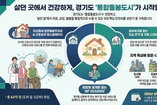 경기도가 화성시, 광명시, 안성시, 양평군 등 4개 시군을 '통합돌봄도시'로 선정해 의료-요양-주거 연계 5대 인프라를 상반기 중으로 구축한다. 이번 사업은 오는 3월 '의료·요양 등 지역 돌봄의 통합지원에 관한 법률' 시행에 앞서 각 지역의 인구 구조와 특성에 맞춘 '경기형 통합돌봄 모델'을 구축하려는 선제적 조치다. 경기도는 도비와 시군비 총 64억 원의 예산을 투입할 예정이다. 국정 제1 동반자로서 경기도가 통합돌봄 정책 기조를 가장 앞장서서 실천함으로써 경기도의 실행 리더십을 증명하는 의지를 담고 있다. '의료·요양 등 지역 돌봄의 통합지원에 관한 법률'은 노인·장애인 등 돌봄이 필요한 사람이 살던 곳에서 필요한 서비스를 받을 수 있도록 묶어서 지원하자는 취지의 제도다. 예를 들어 노쇠, 장애, 질병, 사고 등으로 일상생활이 힘든 사람이 병원이나 시설에 가지 않고도 원래 살던 집과 동네에서 의료·요양·돌봄을 통합적으로 받도록 하자는 것이다. 도는 이 같은 통합 돌봄체계 구축을 위해 통합돌봄도시에서 5대 인프라를 제공할 계획이다. 5대 인프라는 ▲(우리동네 방문돌봄주치의) 거동이 불편해 병원을 찾기 힘든 환자를 위해 동네병원의 의사와 간호사, 사회복지사