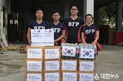 (대한뉴스 한원석 기자)=강원 홍천소방서(서장 이강우)와 조덕연·박홍숙 남·여의용소방대연합회장은 지난 14일 최근 대형 지진으로 피해를 입은 필리핀 세부 보고시티(Bogo City) 소방서에 한국라면 등 위문 및 격려 물품을 전달했다고 밝혔다. 보고시티소방서(서장 노우 디. 일란·Fire chief inspector Nde D. Ylrnan)도 강진으로 인한 내외부 건물파손으로 위험에 노출돼 외부에 막사를 설치 근무를 하고 있는 가운데, 이번 위문은 대형 지진으로 인명·재산 피해가 발생한 보고시티 일대에서 구조·복구 활동을 이어가고 있는 현지 소방대원들을 응원하기 위한 봉사활동으로 홍천소방서와 의용소방대연합회장이 자발적으로 마련해 진행했다. 조덕연·박홍숙 연합회장은 “재난 현장에서 고군분투하는 모든 소방대원들에게 경의를 표하며, 홍천군 의용소방대는 국내외를 막론하고 어려움에 처한 이웃을 돕는 일에 함께할 것”이라고 말했다. 노우 디 일란 보고시티 소방서장과 2소방국(FO2) 마크 프란시스 비코이(Mark Francis Vicoy)는 “국경을 넘은 응원과 격려는 처음 있는 일이어서 너무 놀랐다”며 “한국 홍천소방서에서 보내준 응원과 격려는 보고시티 소방관들에게
